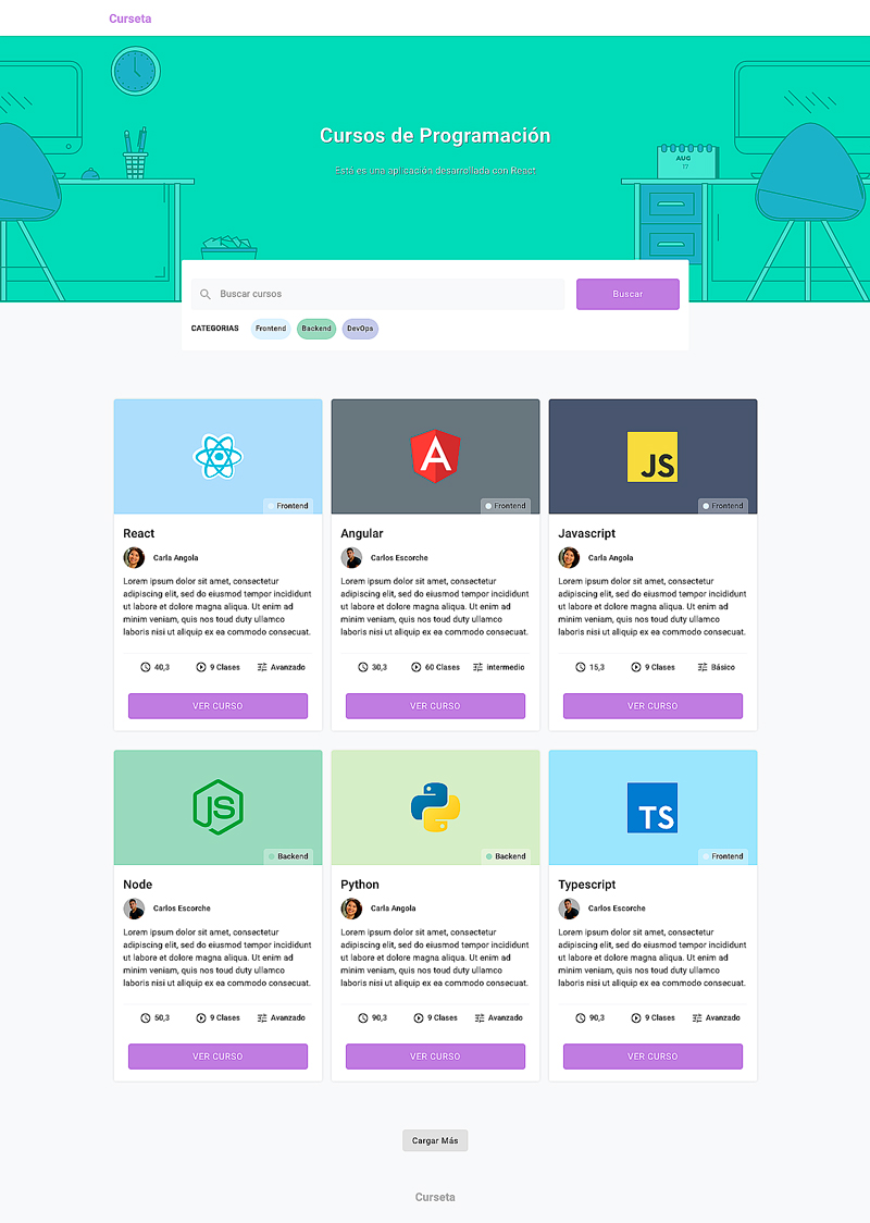 Frontend para una plataforma de cursos online desarrollada con React.js, Redux y React Router.