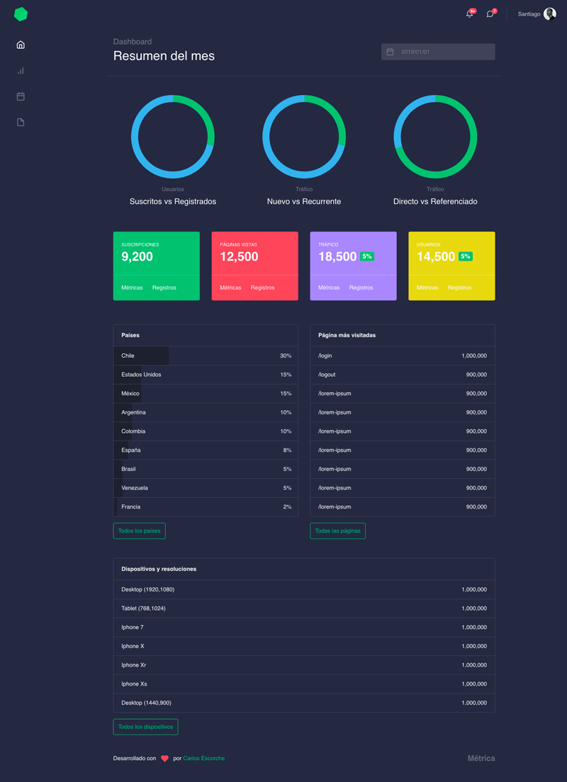 Es un panel administrativo responsivo, estupendo para ser utilizado como herramienta de administración en sitios enfocados en analítica o aplicaciones con grandes volúmenes de datos.