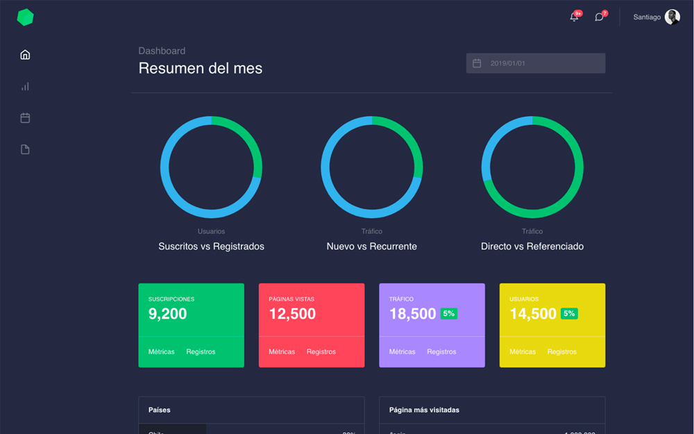 - Diseño UI y representación visual de las propiedades de la interfaz: distribución de elementos, alineaciones, márgenes, padding, tipografías, paleta cromática aplicada.